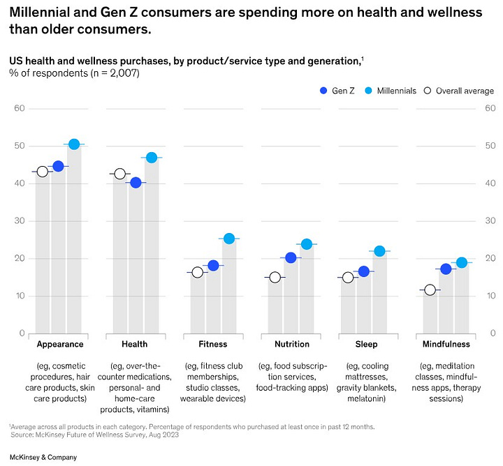 The downstream effects of these pressures are staggering, both for society (did you know that 45% of American women are on a diet… on any given day?) and our economy, with massive (and growing) wallet share spent chasing wellness.