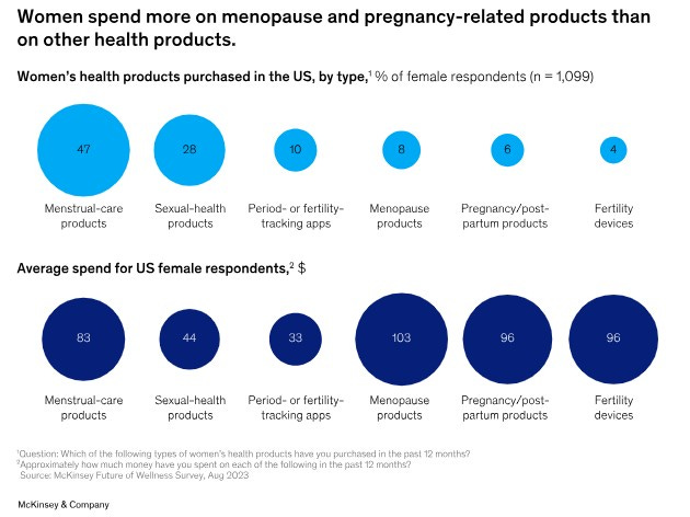 The most salient entry points for Big Wellness often strike during critical, high-stress points in women’s lifespans. Think fertility, pregnancy, post-partum, menopause, breast cancer, and more. Women spend heavily on pregnancy and menopause — with bio-hacking and weight loss (… ah, old trusty) right up there. These, of course, are peddled to us under the guise of “finding our power,” “super mama-ing,” “girl bossing,” and “mastering menopause.” All of these phrases are, conveniently, also splashed across tote bags coming to a book store near you!